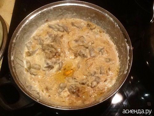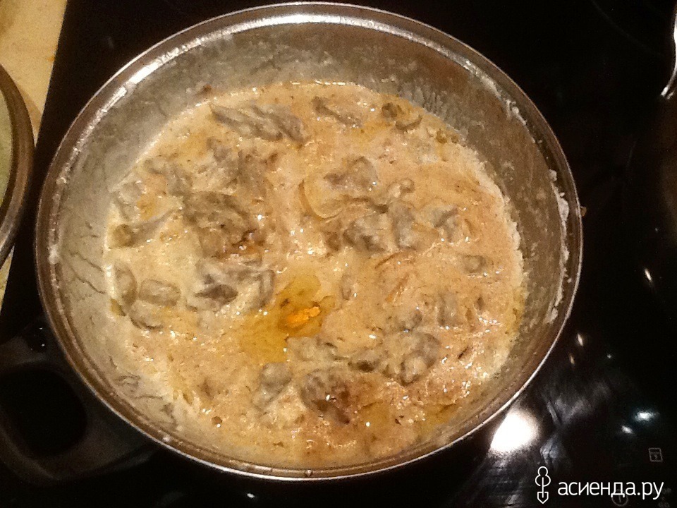 Размешала сметану, довожу её до кипения и НЕ КИПЯЧУ!