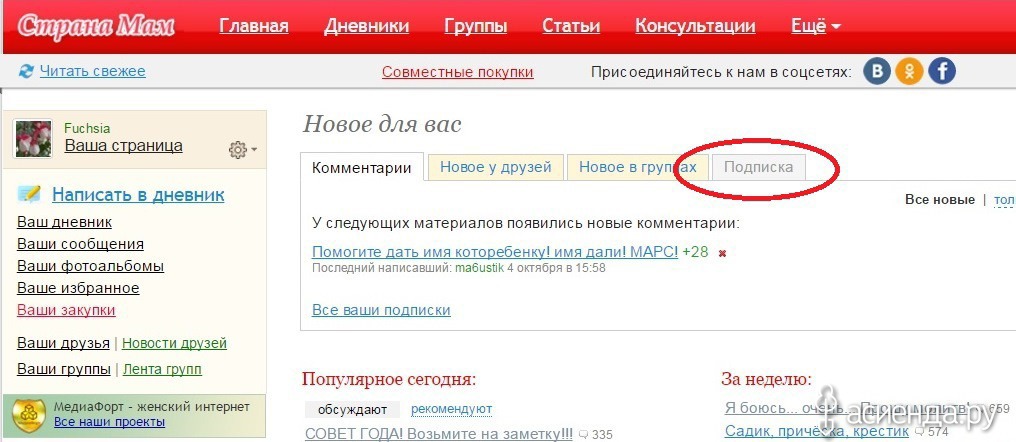 Я только не совсем поняла, как работает сама функция "подписка". В СМ все просто. Я подписываюсь на дневник. Как только автор пишет пост, у меня на главной страничке появляется информация о нем - Главная - подписка - ...