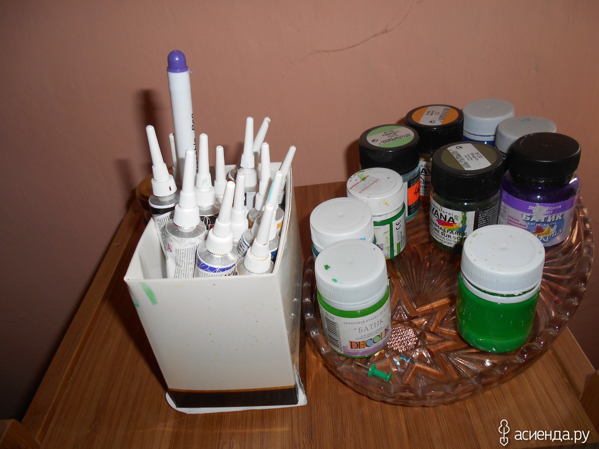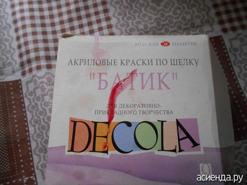 3. Краски. будем работать с акриловыми в технике холодного батика. В магазине худтоваров спросите краски для батика акриловые вам подскжут. Для начала берите свои питерские. Они нормальные и не такие дорогие.