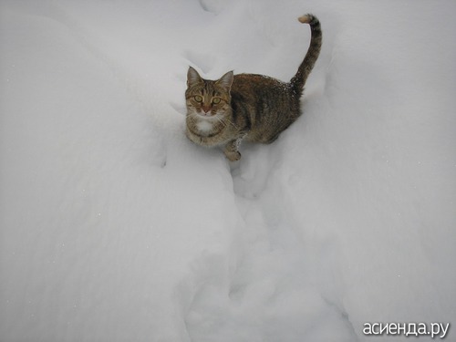 А это коллективная фотка: Муся, Моня, Чернышка. Живут на даче, будут зимовать четвертую зиму. Мы каждый день ходим на лыжах, чтобы их покормить. Вот такая история.