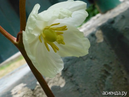 У подофила щитковидного цветение наступает в начале июня, когда листья его уже полностью распустятся. Цветок очень крупный 5-6 см белого цвета очень нарядный, плоды созревают в августе, но бывают по крайней мере у меня не каждый год, у меня были плоды желтого цвета. Размножается делением куста.