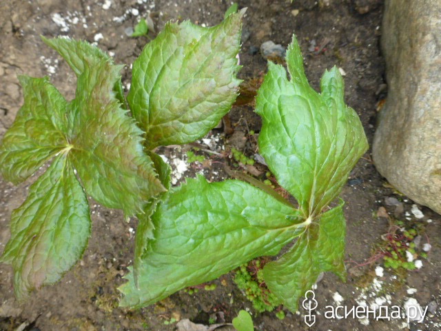 Подофил Спотти Дотти (Podophyllum versipellis 'Spotty Dotty'), сорт является гибридом между азиатскими видами подофилов.