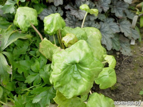 Подофилл Эмода (Podophyllum emodii) общий вид в цветнике.