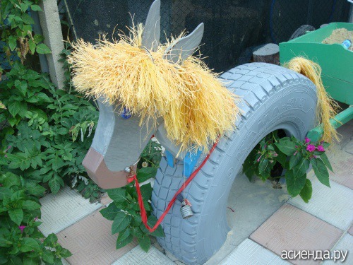 Но лебедь из шины тоже есть, муж когда-то делал, одного я продала пока он был на работе, так до сих пор по нему тоскует второго пока не удается отвоевать хорошо что хоть маленький, из шины от мотороллера