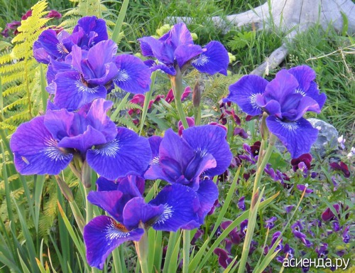 Сибирские ирисы, самые неприхотливые, посадил и забыл, растет и цветет, только срезай отцветшие соцветия и обрезай на зиму, ну а ирис японский немного капризнее, цвести будет только на солнце, когда нарастит хороший кустик, да и на зиму его надо хорошо замульчировать.