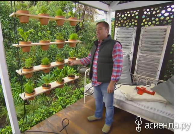 Я так понимаю там еще эти тросы и внизу закрепляются, чтобы при ветре не раскачивалась и горшки не зря друг над другом, чтобы при поливе верхних ярусов вода орошала "соседей снизу"