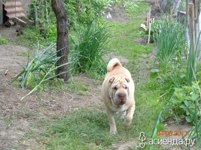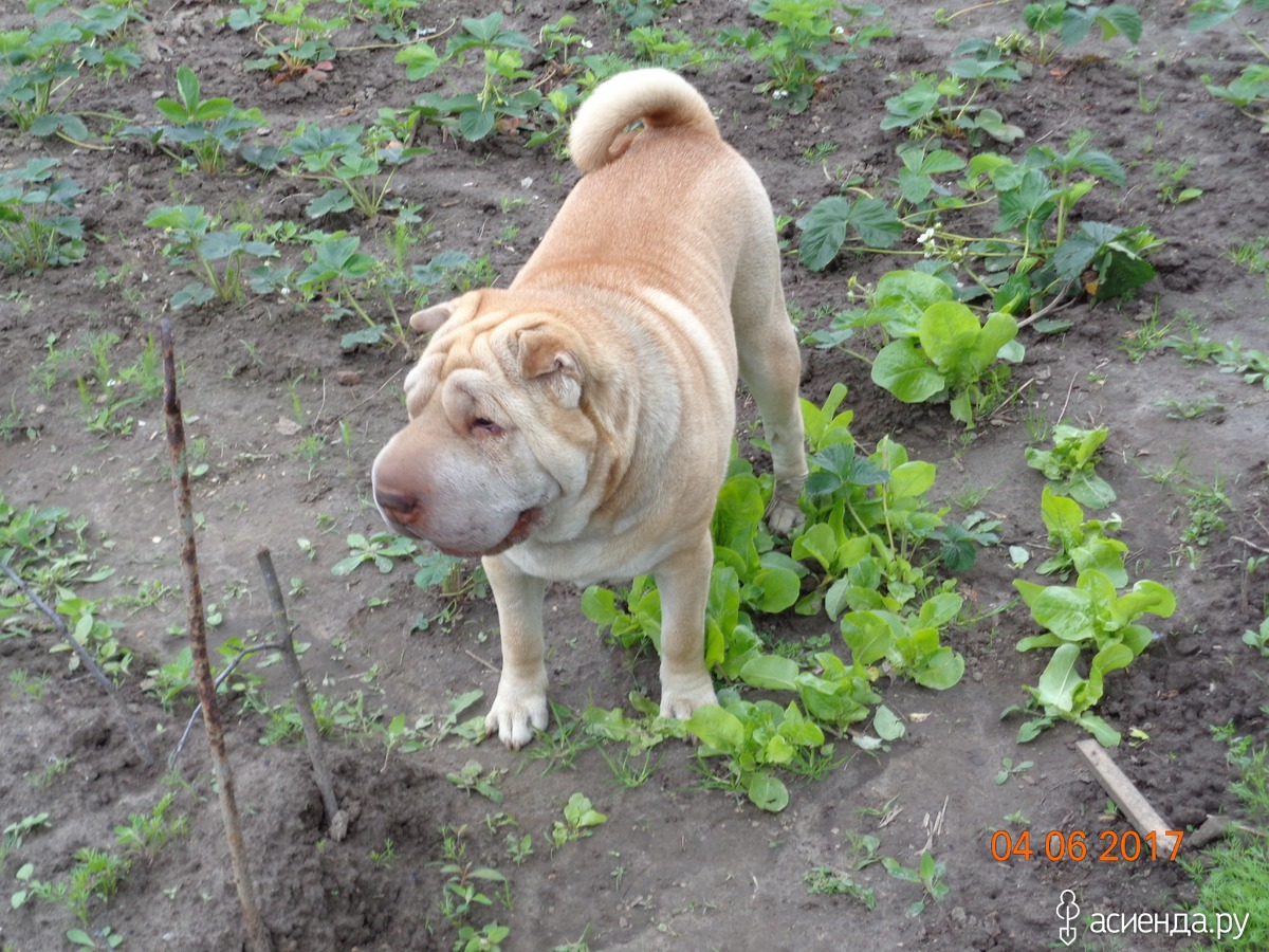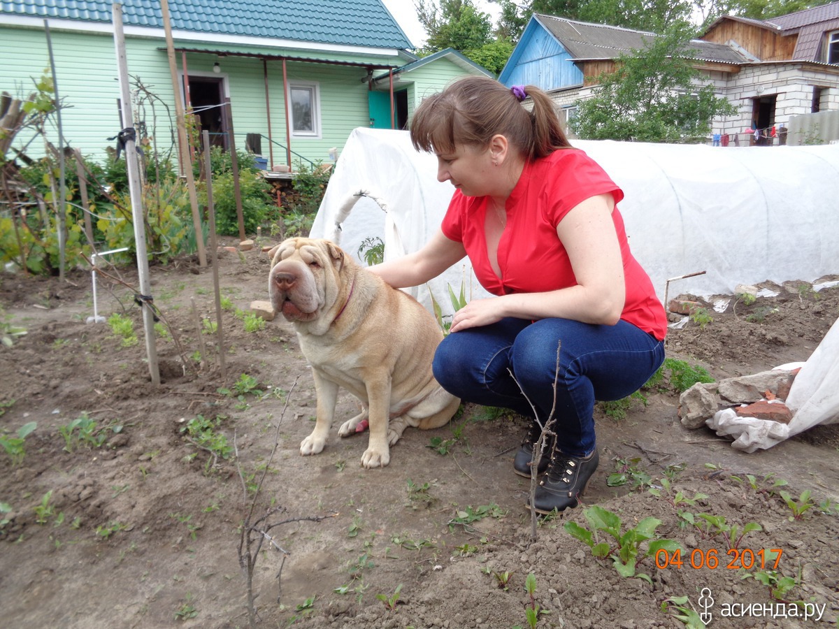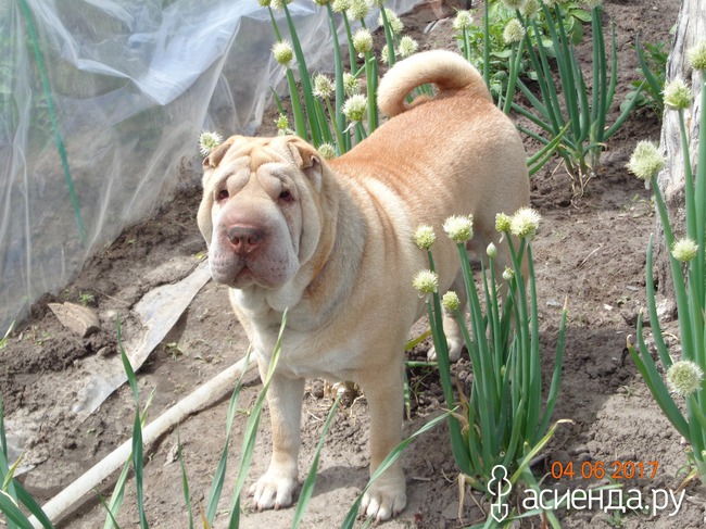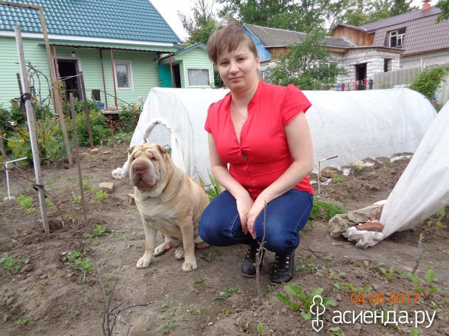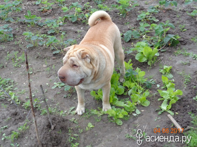 В парниках помидоры и перцы, т.к. у нас, не смотря на лето, перепады температуры, то +25 то +7. А собака по грядкам не бегает, единственное на чем он отыгрывается, так это на клубнике.