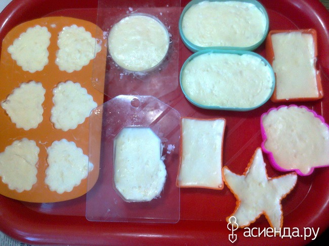 Минус у этого мыла в том, что для равномерного растопления мыла требуется много жидкости (вода, молоко или отвары), которые в процессе хранения мыла испаряются и мыло усыхает. Поэтому такое мыло надо расходовать в течении месяца.