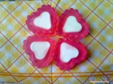 Расскажу как сделать белые сердечки. На водяной бане растопила натертое детское мыло (100 гр)., добавила 1 ст. л. подс. масла и 150 гр горячего молока. Столько много жидкости мне нужно, чтобы мыло было жидкое, т. к. я буду разливать его шприцем.
