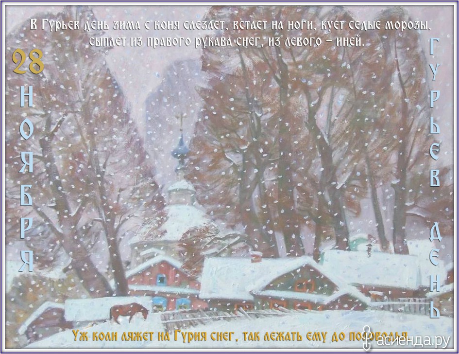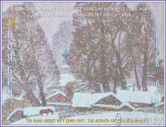 - Если в Гурьев день снег лег на землю, то он больше не растает до весны.