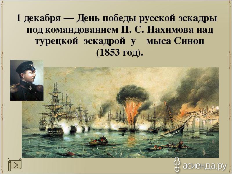 День воинской славы России — День победы русской эскадры над турецкой эскадрой у мыса Синоп