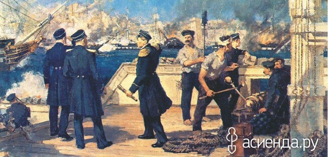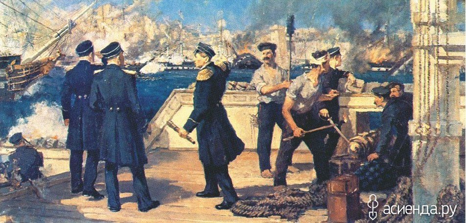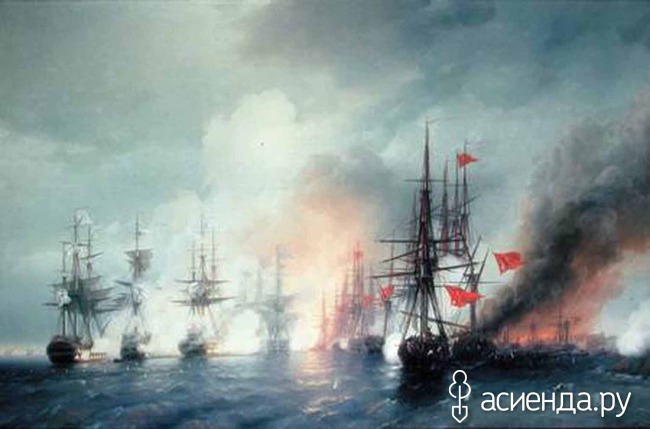 Русская армия и флот имели ощутимое преимущество над слабеющей Османской империей, которую современники называли «больным человеком Европы». Черноморская эскадра под командованием П. С. Нахимова заблокировала в Синопской бухте (гавань на черноморском побережье Турции) турецкий флот под командованием Осман-паши. После битвы, длившейся четыре с половиной часа, были уничтожены 15 из 16 турецких кораблей — только одному удалось спастись бегством. Разгром турок был абсолютным: было убито и ранено более трех тысяч османских моряков против 38 убитых и 235 раненых в эскадре Нахимова.