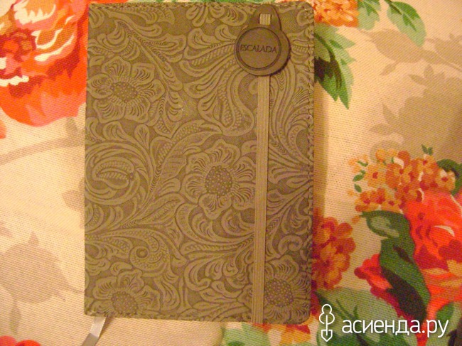 Ежедневник в красивом нежном переплёте. А под ним две яркие салфетки для кухни