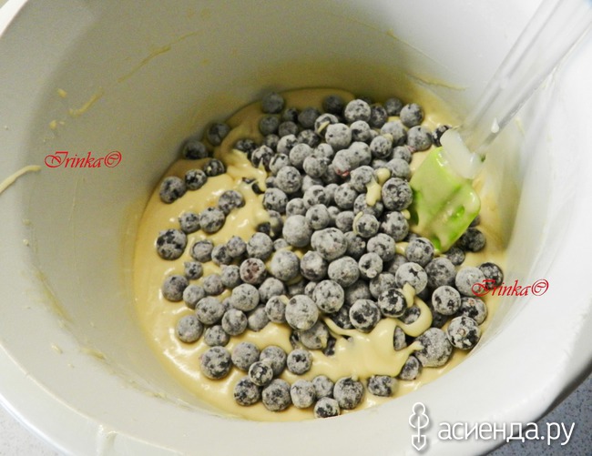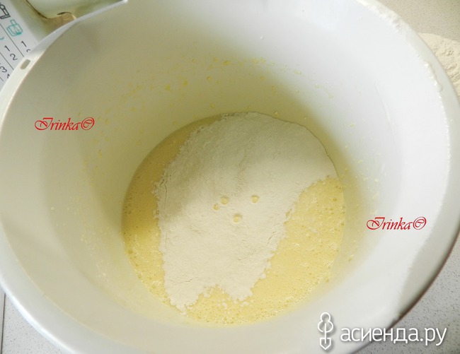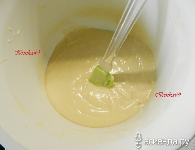 Всыпаем муку, смешанную с разрыхлителем (я взяла самоподнимающуюся муку "Пудов" ) и смешиваем все до однородной массы.
