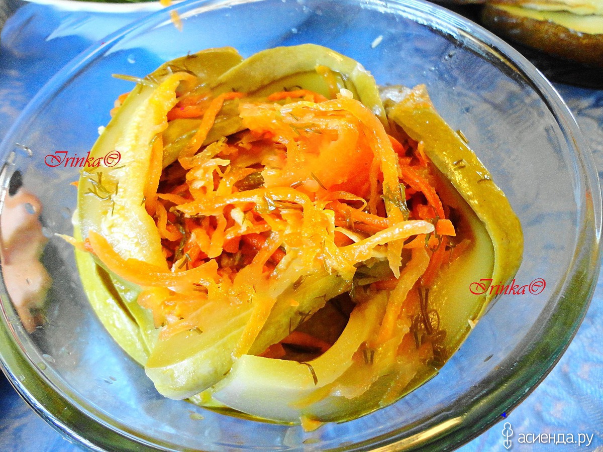 Молодые кабачки разрезаем пополам и нарезаем ломтиками толщиной 0,7 см. Длина такая, чтобы вместились стоймя в банку.