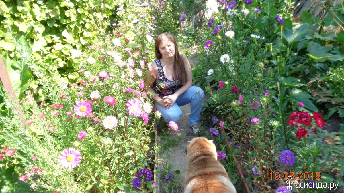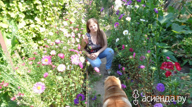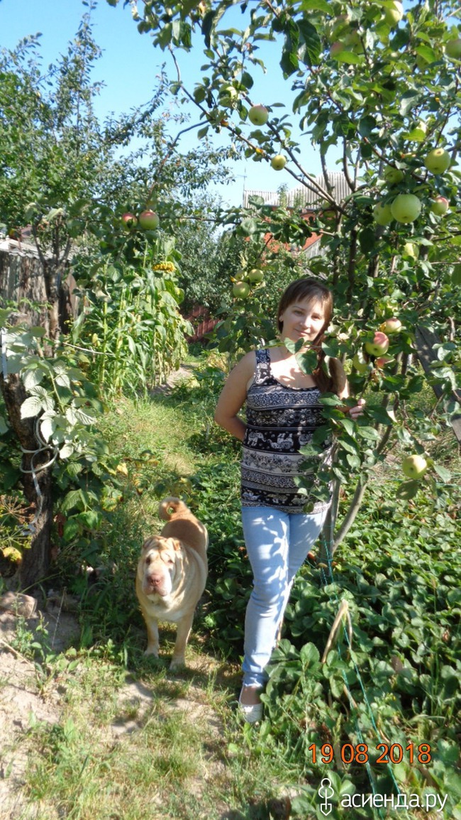 Какой у вас простор...солнечно!Люблю яблони в цвету и наливные яблочки!Сразу чувствуешь их теплый от солнца аромат. Подружайка у вас классная!А со мной по саду только два кота на перегонки бегают Хризы у меня ещё не цветут...нынче всё сильно запаздывает.