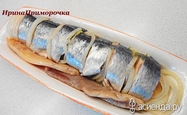 На следующий день выкладываем в селедочницу, поливаем растительным маслом и можно пробовать!