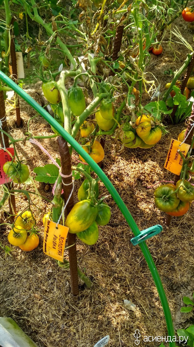 Среднеспелый 110-120 дней, индет. до 2х м. плоды 70-90 гр. на ветке 6-8 кистей, в кисти до 10 шт. Ярко-желтые, сливовидные с носиком, вкусные, сочные, кисло-сладкие, малосемянные, хорошо дозревают и хранятся. выращивала в теплице и в ОГ, формировала в 2 стебля, первое соцветие над 9 листом, пасынковала и подвязывала. Урожайность до 3х кг. с куста. Хороши для салата, консервации, вяления, сок и пасту не делают. Слабо поражается фитофторой. Тенелюбив, любит обильный полив. Очень мощный стебель