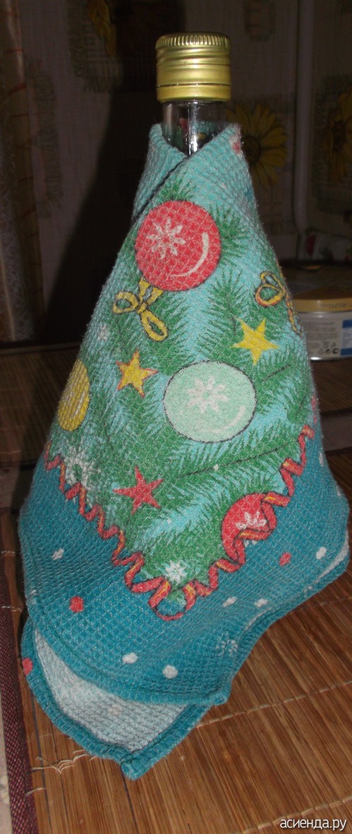 Мы на бутыль набрасываем темное покрывало.