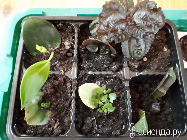 Дождалась я от листиков пеперомий всходов, все укоренились и пустили деток.