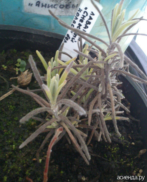 Прошлогодняя, чудом выжившая, лаванда стоит с зелёными макушками