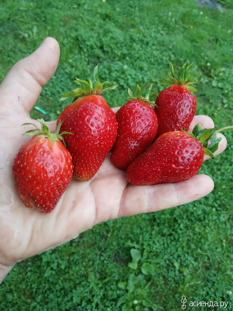 25. Безымянный от подружки. Мы с моей подружкой Надюшкой только в октябре смогли встретиться обменяться усами. Сроки посадки были совсем не клубничные. И я сажала усы по горчице, надеялась, что так ей будет теплее. Зима была супер мягкой, снега мы и не видели и впервые горчица не замерзла, а даже подросла за зиму и зацвела, вот уж весной проблем было найти клубничный усик при прополке. Но я справилась. Ягода интересная, вкус правильно клубничный.