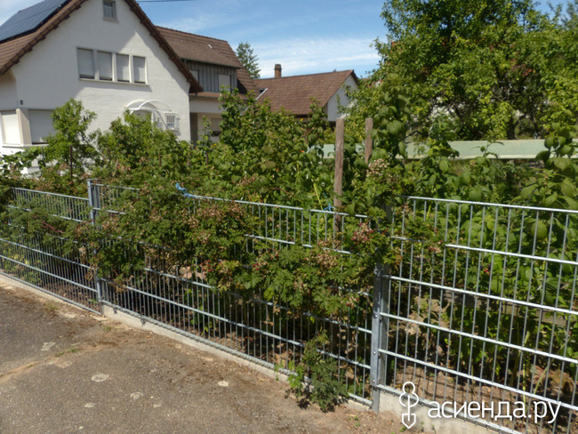Малина росла и я начала ощущать неудобства. Собирать малину со стороны улицы невесело. Те ягоды, что вызрели над забором, о них позаботились прохожие. Мы до сих пор иной раз вспоминаем, как зять хотел табличку заказать и у малины повесить. Дескать, прохожий, угощайся. Каждый по горсти ягод. Но пока собирался эту табличку заказать, стало ясно, что народ смекалистый и понимает все без слов. Так вот сверху собирают прохожие, а к нижним через забор пробираться сложно.