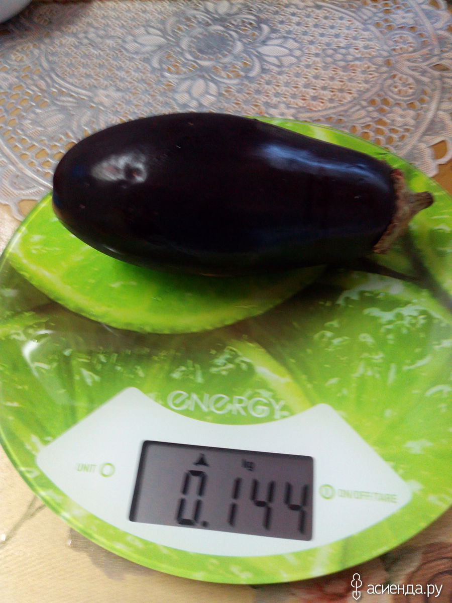Срывала плоды, не дожидаясь больших размеров, так они нежнее. Вес плодов небольшой. Но еженедельно срывала по 6 - 8 плодов. Летом как-то не до взвешивания было. Это фото осенних баклажан.