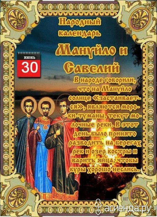 Православная церковь 30 июня вспоминает мучеников Мануила, Савела и Исмаила, которые, согласно житию, были родными братьями и проживали в Персии в 4 веке
