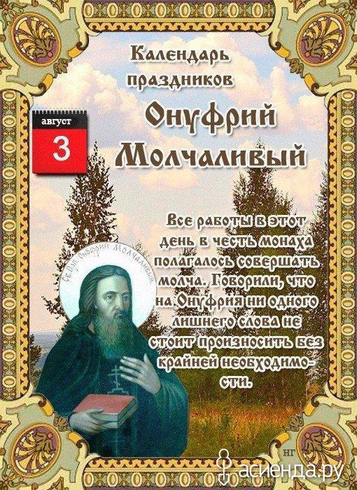 Все работы в этот день в полагалось совершать молча. Говорили, что на Онуфрия ни одного лишнего слова не стоит произносить без крайней необходимости, а если уж и надобно было что-то сказать, старались обойтись одним-двумя словами, не более. Работы в этот день было достаточно и тешить душу разговорами крестьянам в любом случае было некогда.