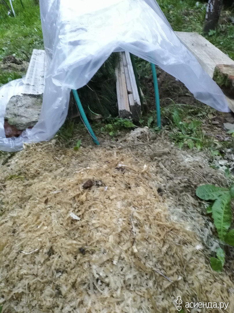 Где опилки, сверху золы добавила. Да ещё столько улиток попалось в парнике огурцовом, да жирные такие.