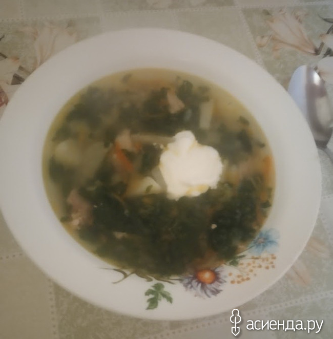 Щи варила по рецепту из интернета – мясной бульон, картошка, поджарка из моркови и лука, за 10 минут до окончания варки добавила ошпаренные кипятком и порезанные листики крапивы. Осталось только попробовать щи.