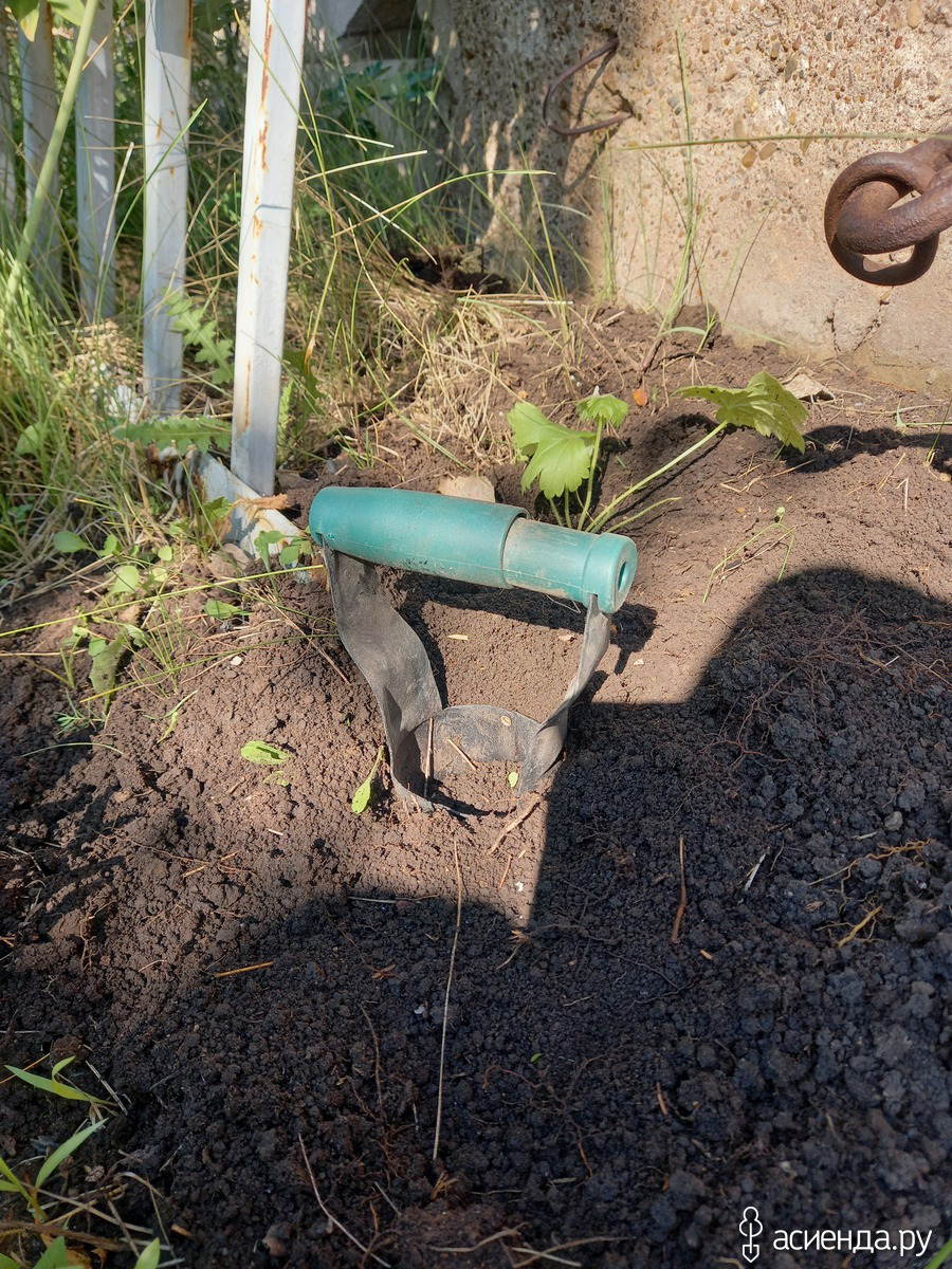 Сажала вот такой штукой. Удобно вынимает землю под стаканчик в самый раз. А ведь дельфиниуму обязательно нужно не заглубить корневую шейку, как клубнике.