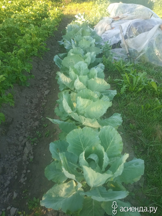 Капуста у меня в этом году тоже была неважная. Рассада в грядках прижилась хорошо. Раннюю я посадила в огороде, а позднюю, как обычно, на краю картофельного поля.