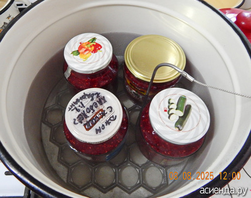 Сегодня косила, собирала малину и варила варенье. Сделала для себя открытие, вернее нашла применение советской пельменнице. Банки стоят ровно, мне очень понравилось.