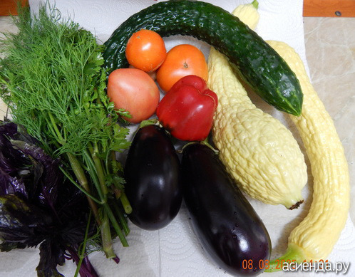 Собрала своих овощей на рагу. Кабачок очень понравился, кожица мягкая и счищать её не надо. Буду такой теперь садить. Даже собаки вместе с кожицей съели.