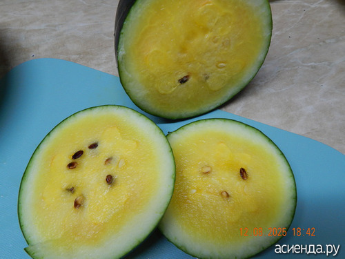 Съели первый арбуз в этом сезоне. Очень довольны что получилось вырастить, в июле то до +1* опускалась температура.
