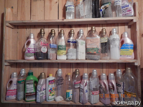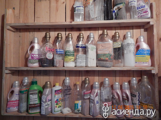 Сделала личную полку для удобрений, мечтала давно о такой, где бы только удобрения стояли и "лицом" ко мне. Сразу видно где и какое. Полка специально узкая, что бы больше на нее ничего не впихнуть.
