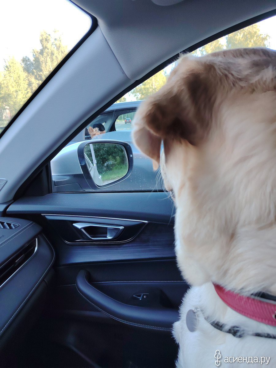 Минут десять на эту девушку пялился, потом пришел папа. Пришлось папе сесть на заднее сиденье. Поехали. Немо просто сиял от счастья - такой гордый, лыба до ушей, типа волосы назад... по сторонам смотрит! С нами не разговаривает, на имя не откликается...