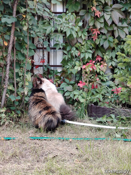 Жужа все таки такая грациозная красавица! Все её движения точны, размеренны, очень аккуратная. Всегда точно рассчитывает расстояние до цели, в отличие от Арчика. Арчик тут прыгнул на елку за стрекозой - по елке скатился на лужайку, естественно стрекозу не поймал, обиделся дернул хвостом и удалился в грядку с мятой, типа : "не очень то и хотелось!"