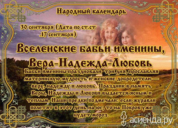 ПРИМЕТЫ НА 30 СЕНТЯБРЯ: