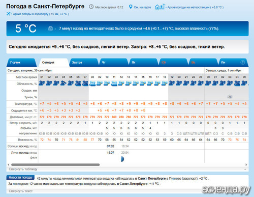 Днем температура воздуха будет колебаться от 9 до 11 градусов. Ночью столбик термометра покажет от -3 до +5 градусов, но чаще всего будет держаться около нулевой отметки.