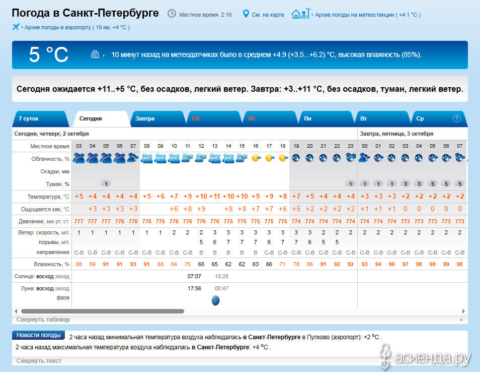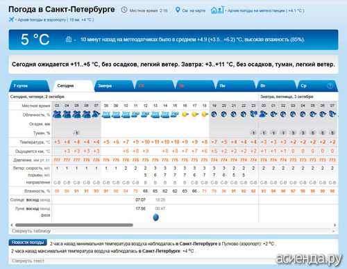 Ночь: +4 °C, переменная облачность, ощущается как +1 °C.