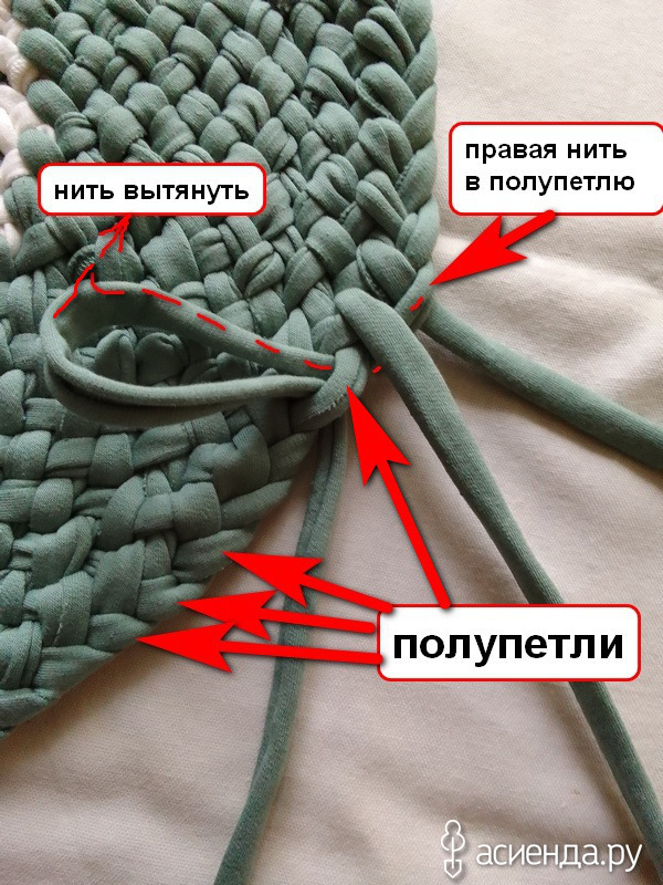 Фото для наглядности где полупетли и какой нитью привязывать косичку к полотну.