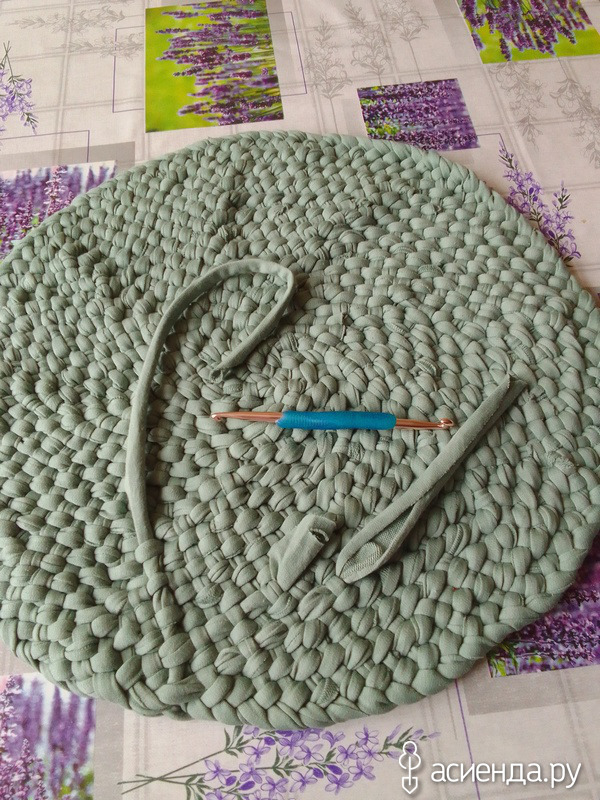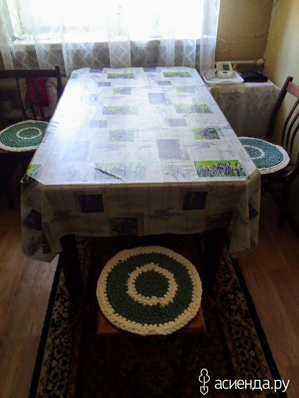 Давным-давно... очень давным-давно, когда я была ещё школьницей, бабушка научила меня плести пальцами сидушки на стулья. Последний раз этим способом я плела лет так 30 назад, когда уже мои ребятишки были школьниками. Почему я так помню вехи своего творчества? - банально... для плетения таких ковриков нужна трикотажная тянущаяся пряжа, так вот я резала детские штаны, колготки, футболки, олимпийки, коих было неимоверное количество, из которых и плела сидушки-подушки. Потом дети разъехались, трикотажных тряпок стало в разы меньше и сидушки на стулья пришлось уже шить.