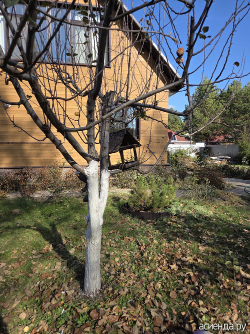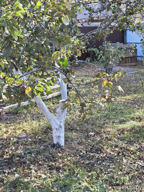 Сегодня после обеда побелила деревья. На неделе планирую розы потихоньку пригибать, гортензии (цветы) обрезать и ставить каркасы для укрытия. Готовимся к спячке.