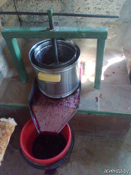 Муж из бака стиральной машины сделал пресс для отжима винограда.