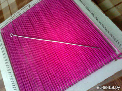 По поводу "соорудить рамку". Посоветую её сделать по размеру длинной спицы , которая у тебя есть (или спицу подбери под размер своей рамки). Она будет выполнять роль продевателя между ниток на раме (пальцами и крючком задолбаешься работать). У меня вот такая спица