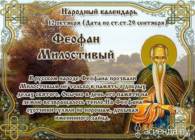 ПРИМЕТЫ НА 12 ОКТЯБРЯ:
