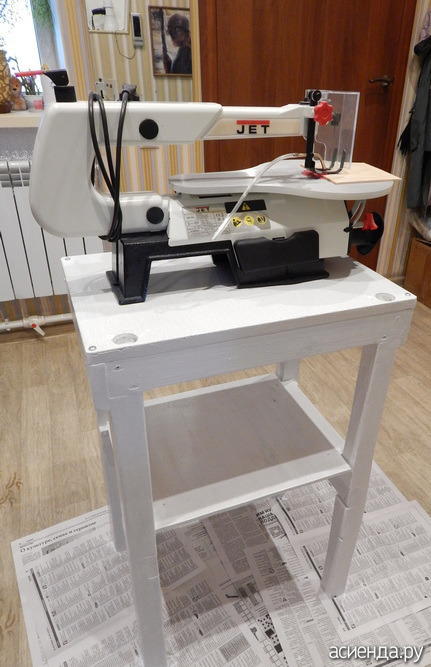 Покрасила на три раза верстачок, примерила станок. Всё путём, можно станок приворачивать к столешнице. Собрано из всяких отходов, а столешница - дверка от кухонного гарнитурного шкафа. Пластик на дверке с двух сторон толстый, вот и пригодилась, долго лежала ждала. Станок тоже уже года три ждет своего часа. На эту зиму мы с Катей решительно настраиваемся на творчество.